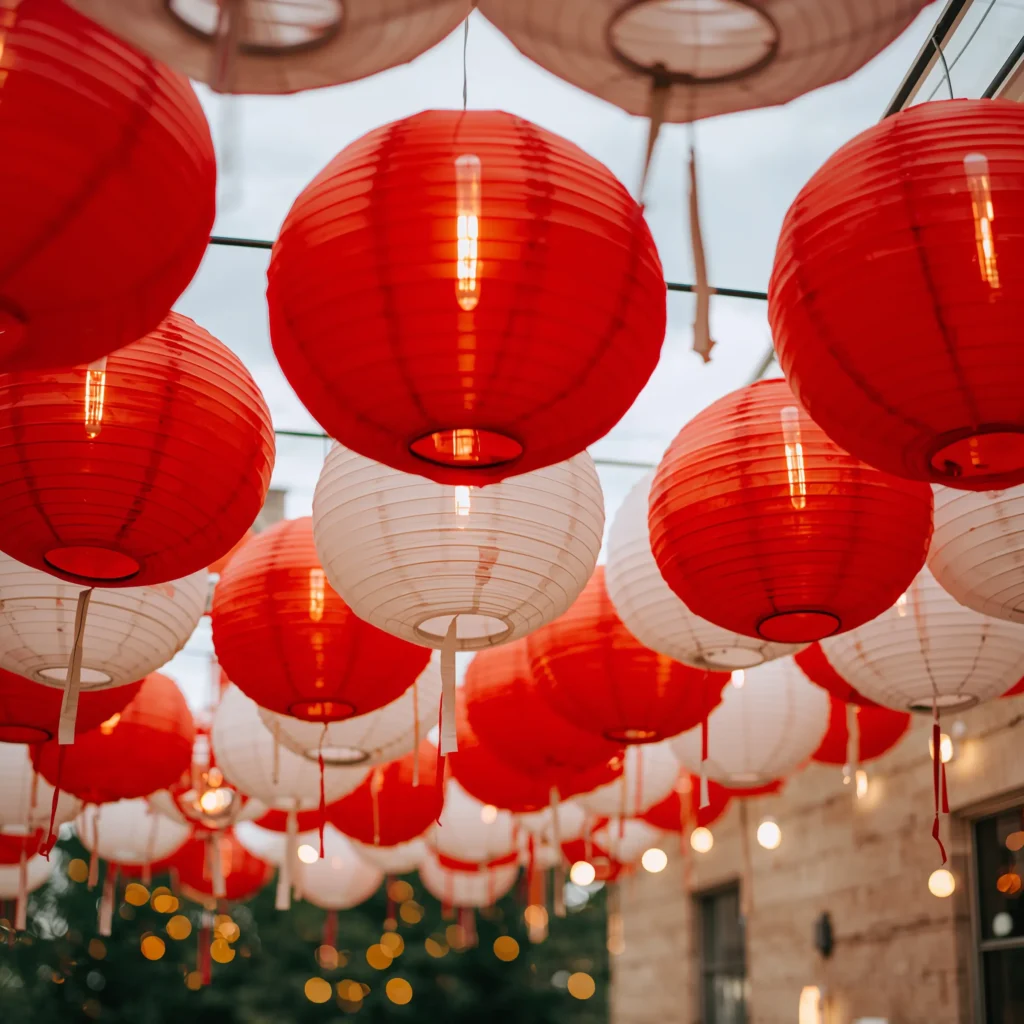 Sometimes the most elegant solutions are the simplest ones, and red and white paper lanterns are proof of that. They’re affordable, easy to hang, and create this beautiful, soft lighting that makes any space feel more intimate and festive.