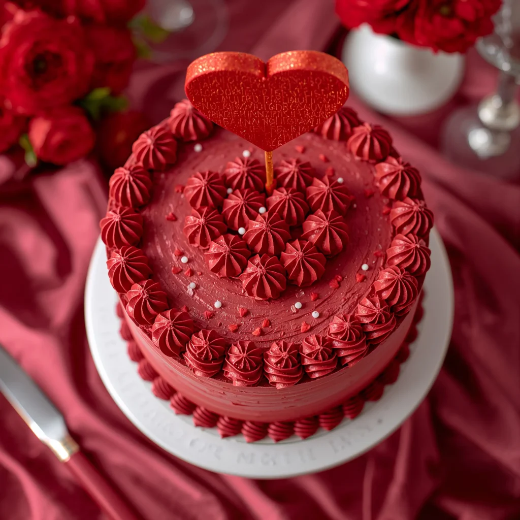 Let’s end with something that ties everything together – a heart-shaped red cake topper. This might seem like a small detail, but it’s often the thing that makes your cake (and your party) look professionally designed rather than thrown together.