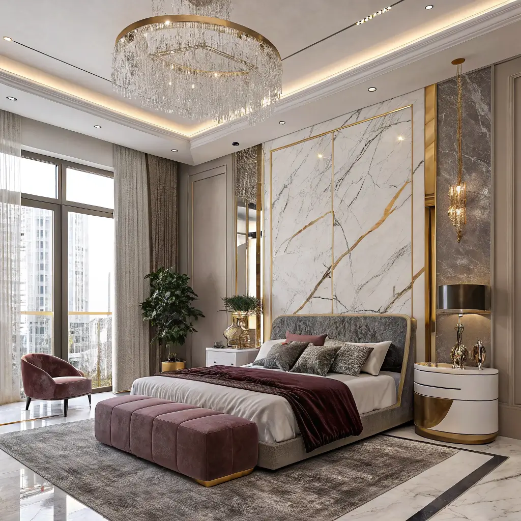 Opulent Marble Accent Bedroom