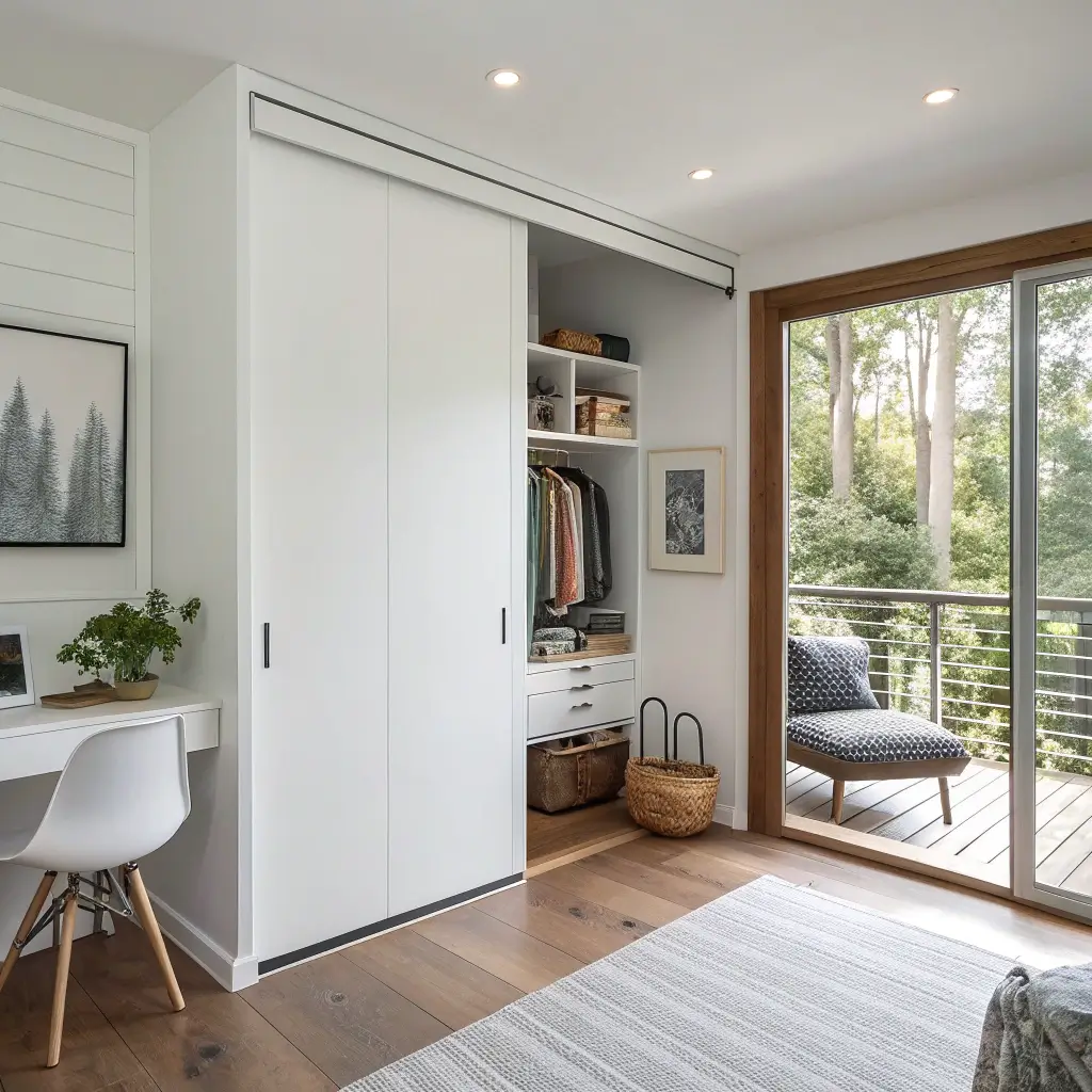 Pocket doors slide right into the wall cavity when opened. How cool is that? They literally disappear, giving you maximum floor space and zero door swing issues.
