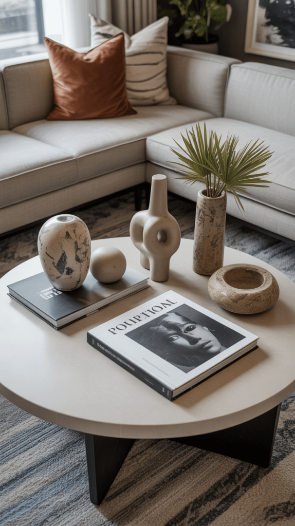 1. Minimalist Round Coffee Table Styling Ideas