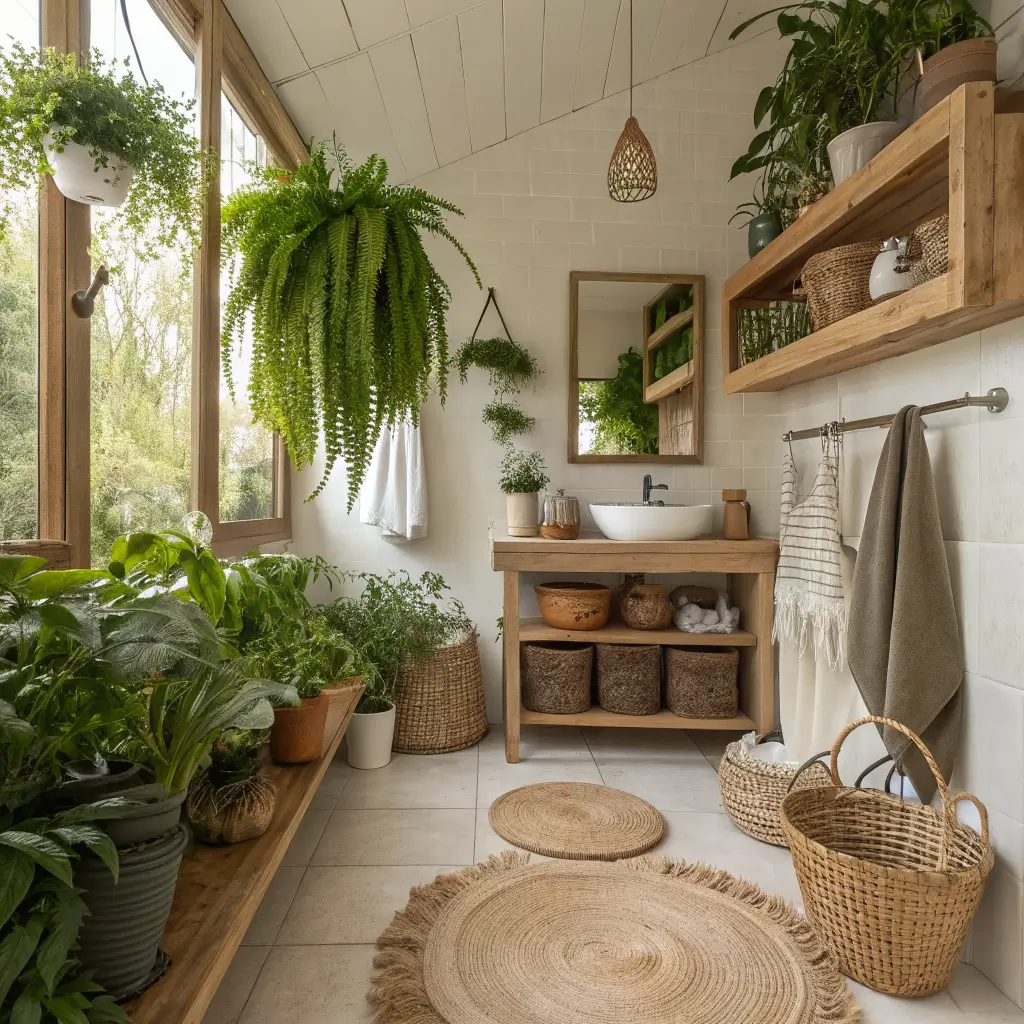 3. Boho Plant-Filled Bathroom Oasis