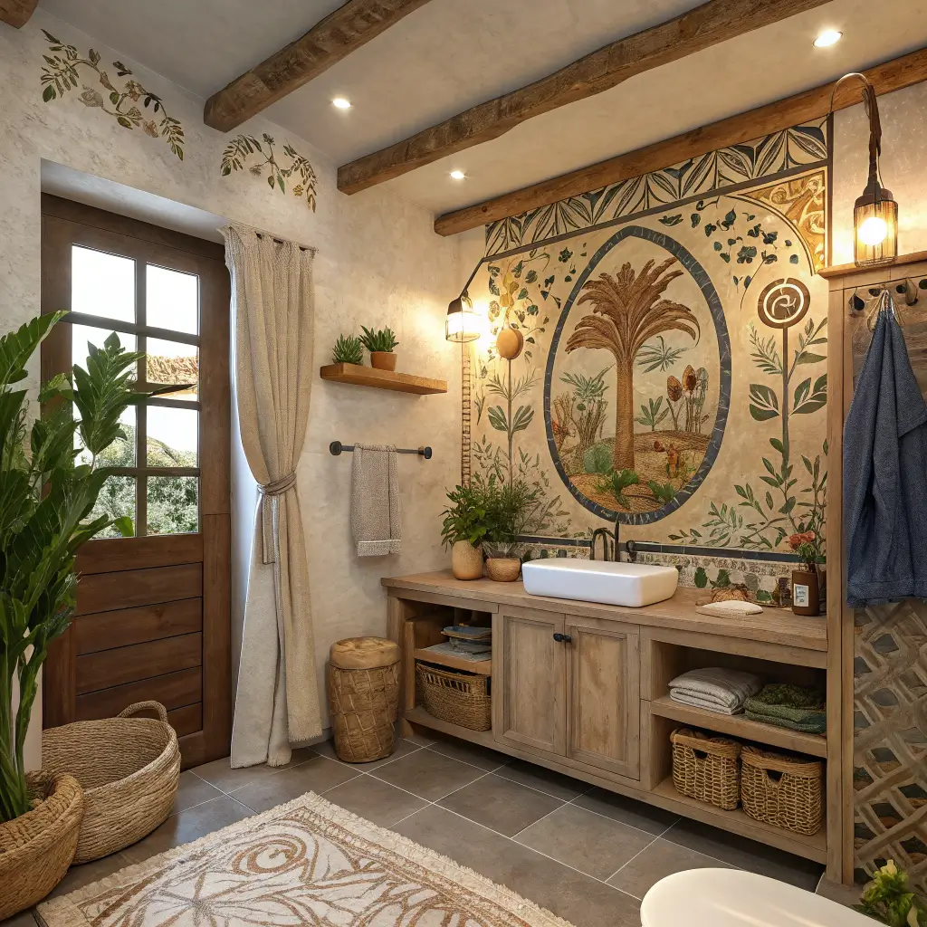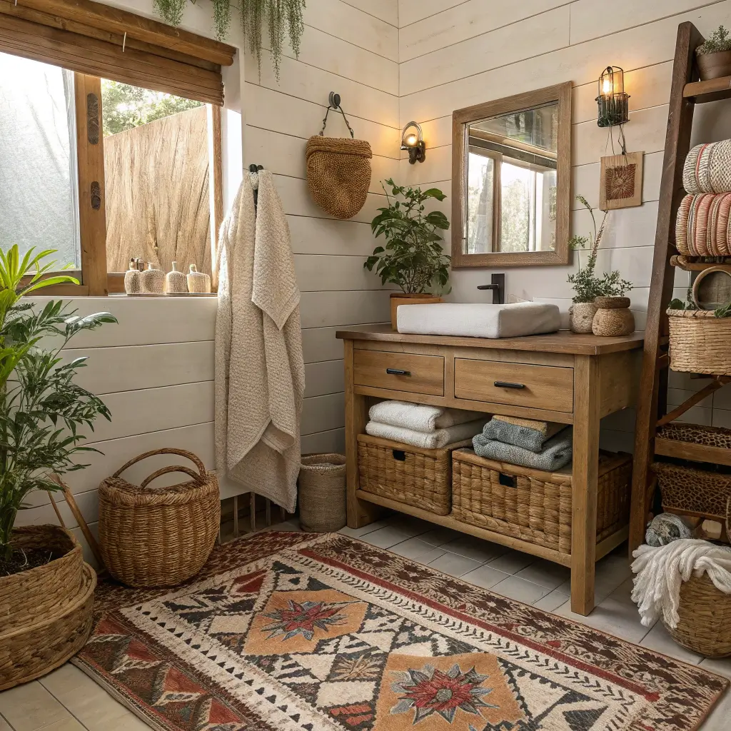 Here’s what I’ve learned: rustic boho is the sweet spot between rugged charm and free-spirited warmth. It’s weathered wood meeting macramรฉ. It’s vintage brass next to trailing pothos. And when you get the mix right, your bathroom becomes the kind of space people photograph without asking.
