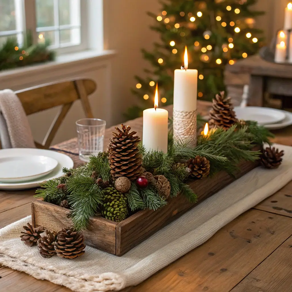 Start with a base of mixed greenery – cedar, pine, fir, whatever you can get your hands on. Lay it down the center of your table, overlapping pieces to create fullness. The smell alone makes this worth it. Seriously, why do we spend money on artificial pine-scented anything when the real deal exists?