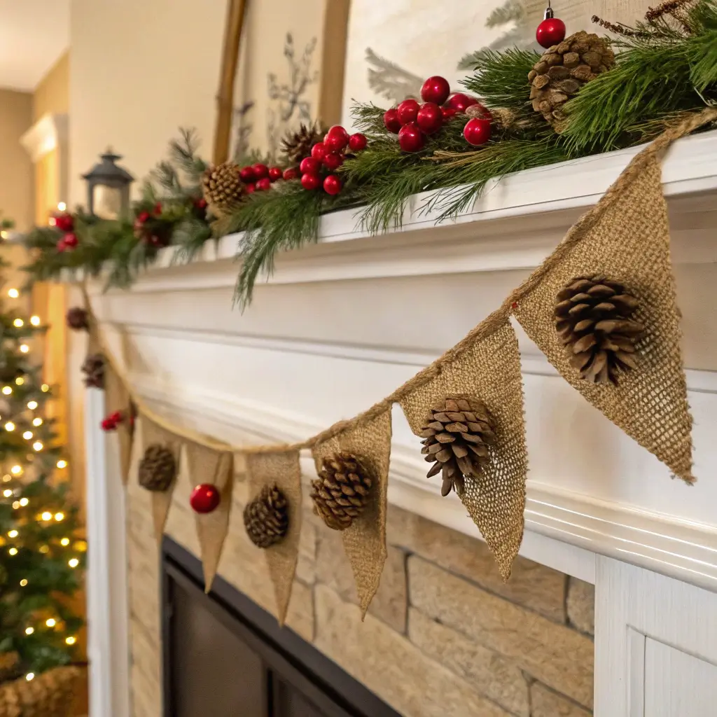 My go-to garland combines burlap ribbon, natural twine, and dried elements like mini pinecones or preserved eucalyptus. Cut burlap into triangular pennants (or rectangles if triangles stress you out – no judgment here). String them onto twine, leaving space between each piece so it doesn’t look too heavy.