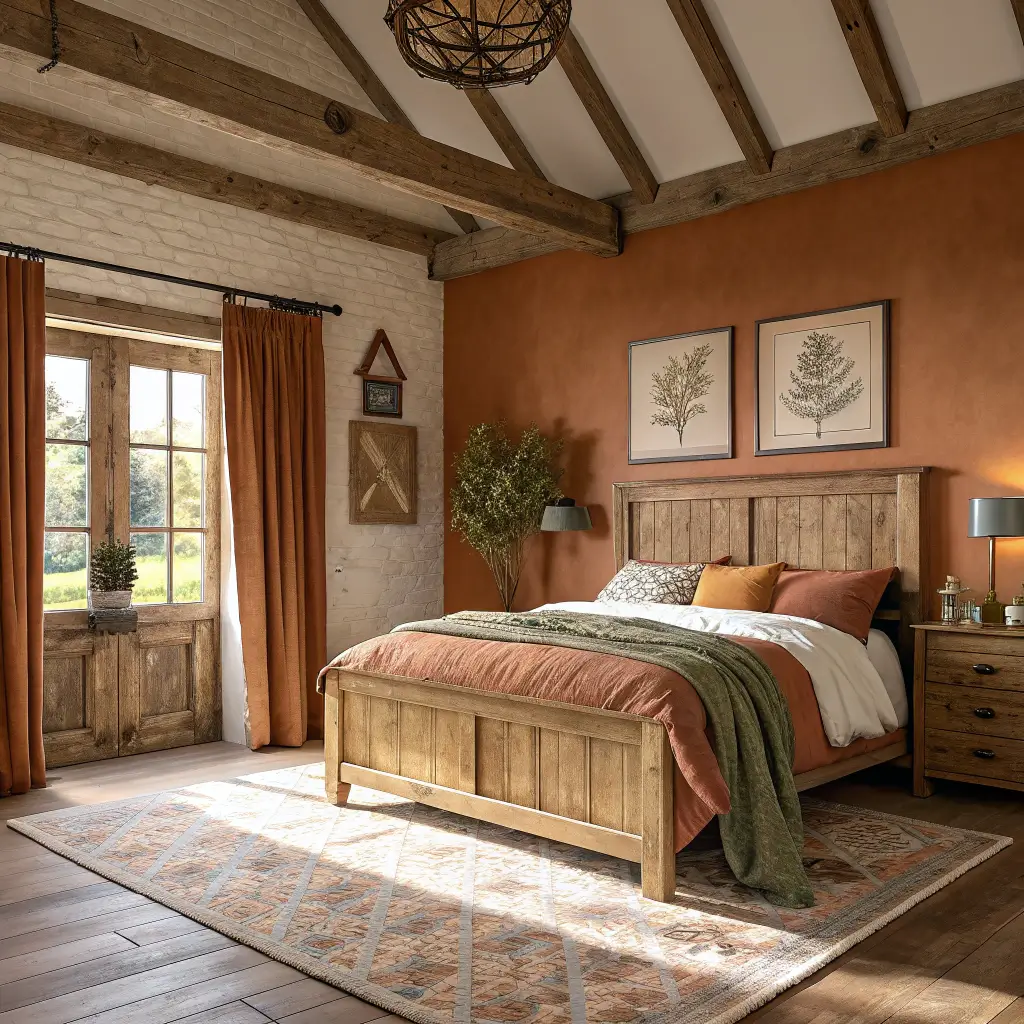 4. Warm Earth-Tone Rustic Bedroom