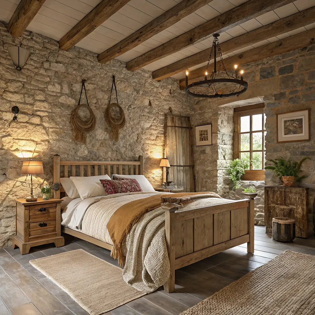 8. Rustic Farmhouse Bedroom with Stone Accents