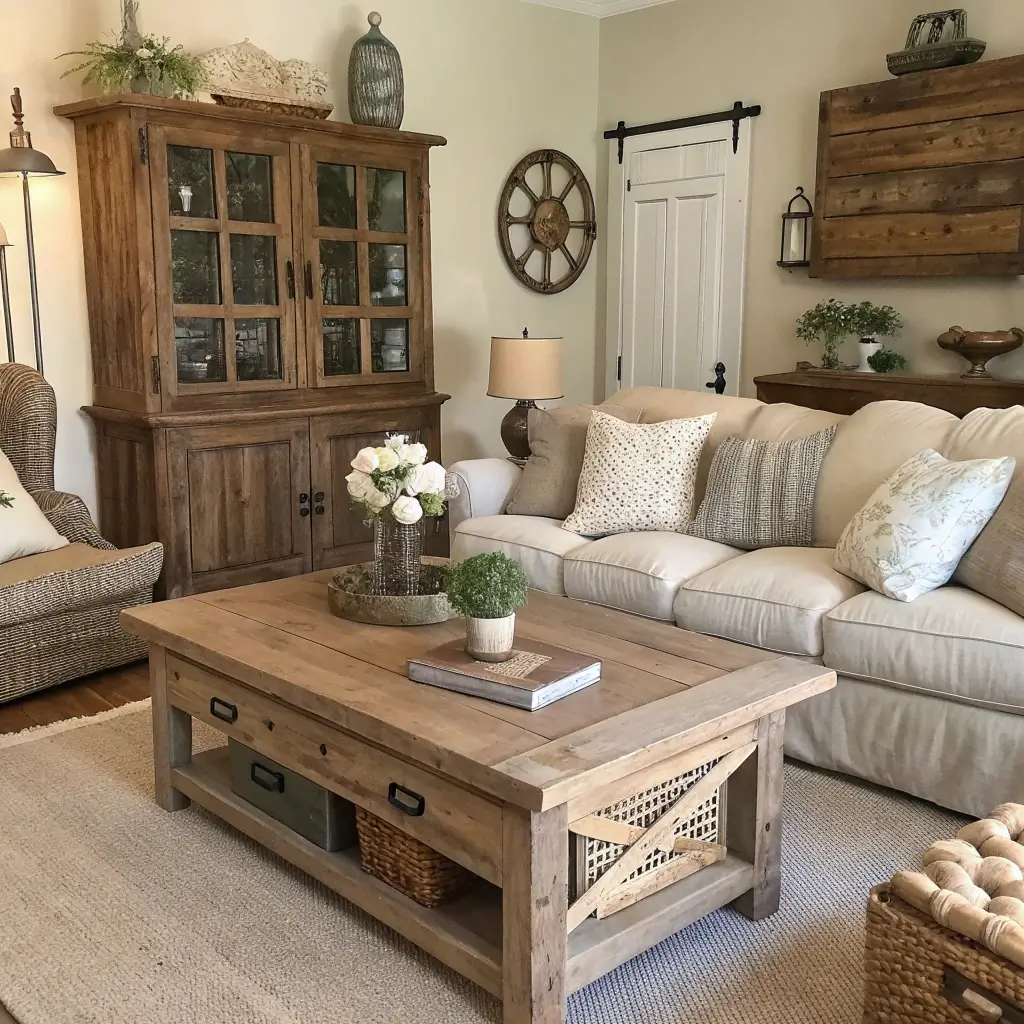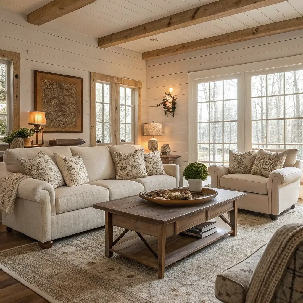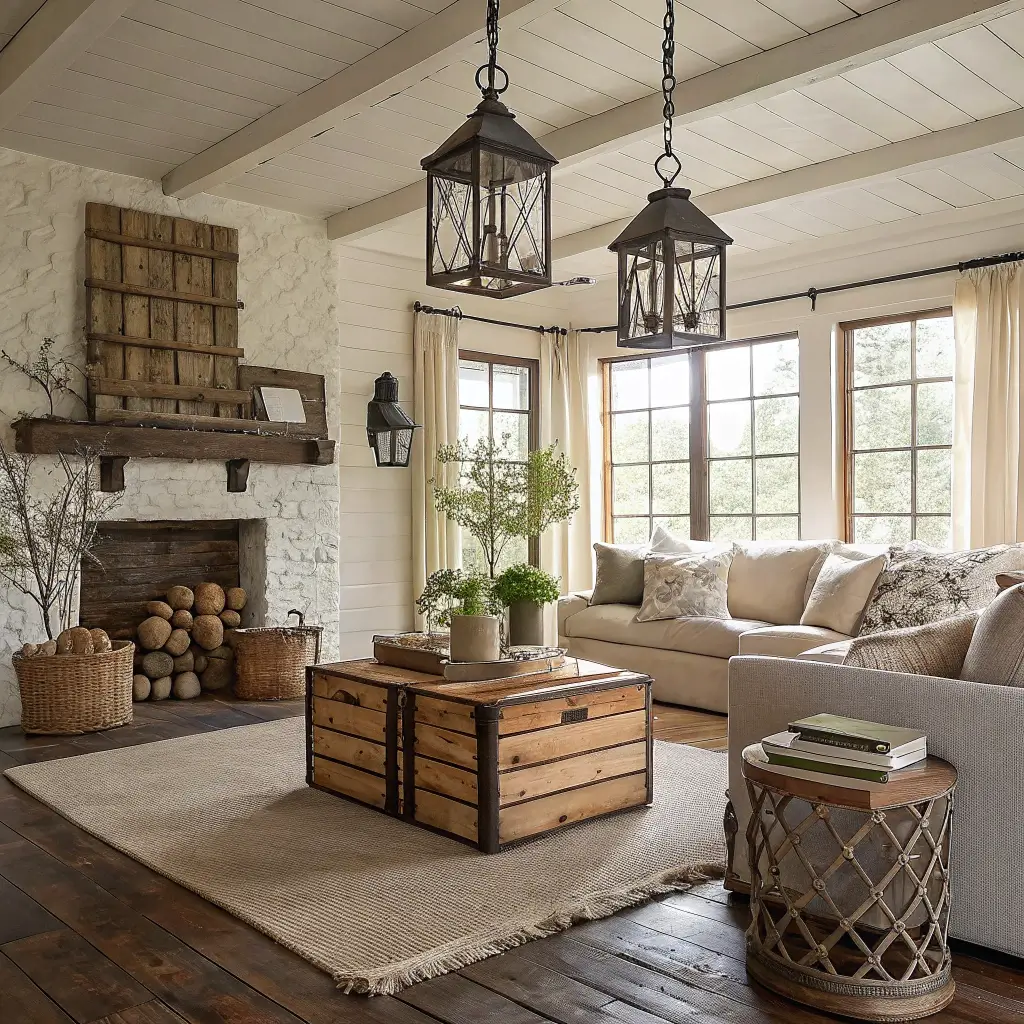 Rustic Farmhouse Living Room with Cozy Textiles