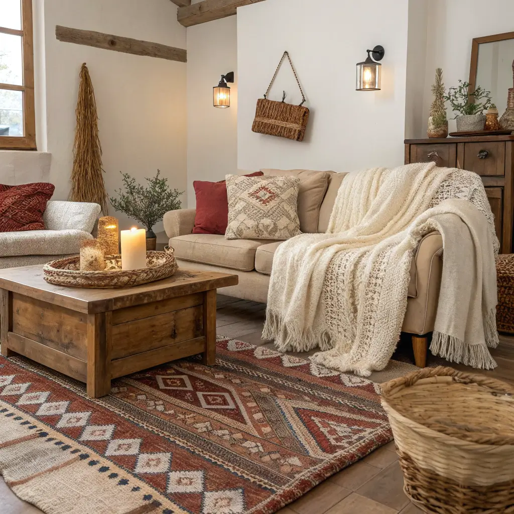 The key here is balance. Too much boho and you lose the farmhouse feel; too little and it’s just another rustic room. Start with farmhouse bones – wooden furniture, neutral base colors – then layer in boho elements strategically.
