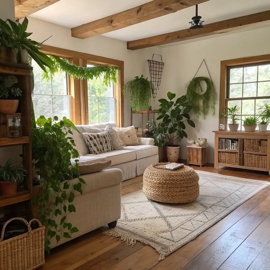 Rustic Farmhouse Living Room with Greenery