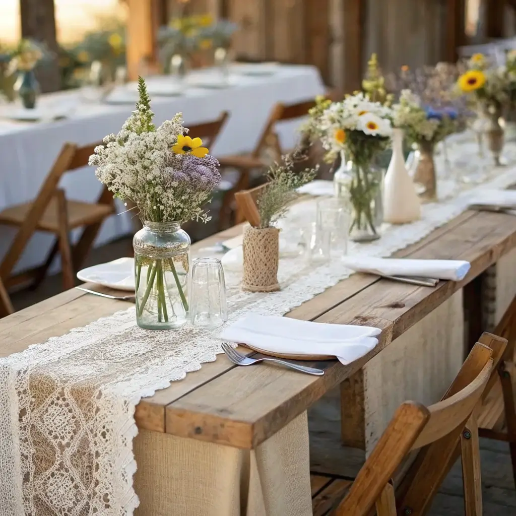 Nothing says rustic romance quite like the combination of rough burlap and delicate lace. This dynamic duo creates the perfect contrast that makes your tablescape pop while keeping that down-home feel intact. I’ve probably made about twenty of these runners for various friends’ weddings, and each time, people lose their minds over how expensive they look (spoiler: they’re not).