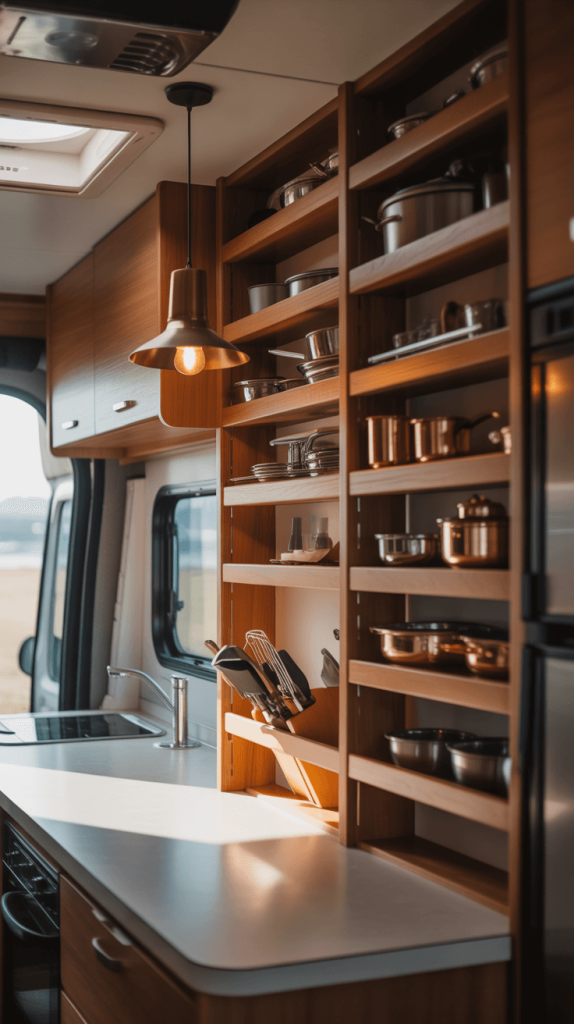 - Pro Tip: Use tension rods inside upper cabinets to create dividers for baking sheets, cutting boards, and lids. It’s a $10 hack that solves a major organizational headache. Always, and I mean always, secure your shelves properly into studs with appropriate hardware. The road is bumpy, and you don’t want your grandmother’s china becoming a projectile.