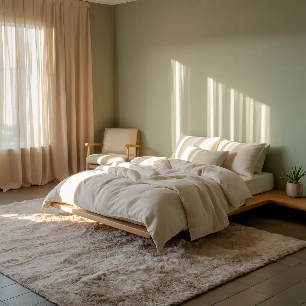 Cozy Sage Green and Cream Minimalist Bedroom
