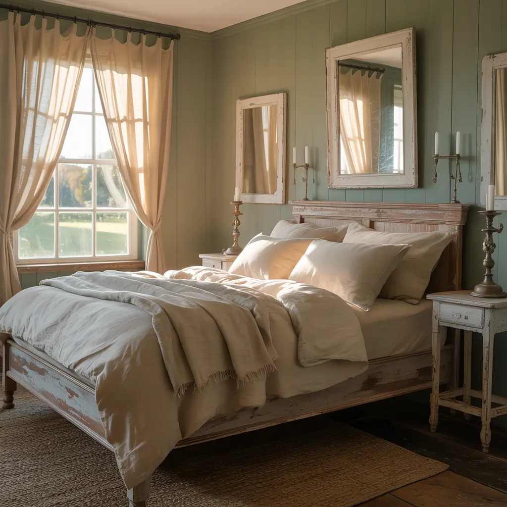Vintage-Inspired Sage Green and Cream Bedroom