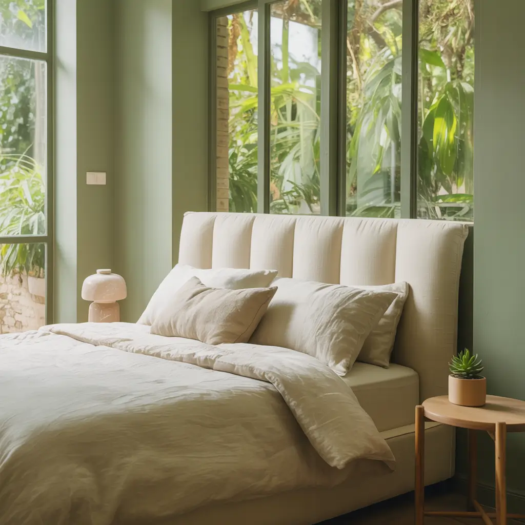 Ever wanted your bedroom to feel like a spa? This is your blueprint. Sage green and cream create that instant calm that makes you exhale just looking at them.
