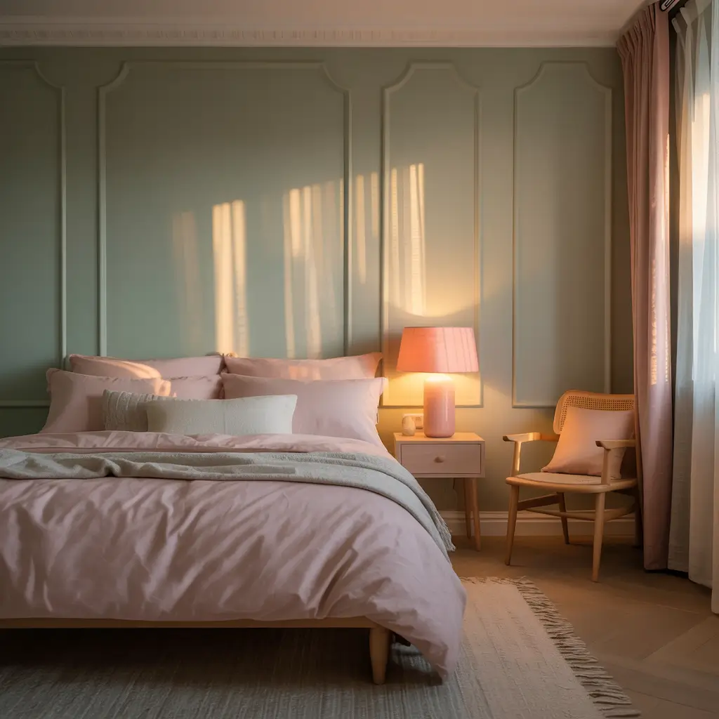 Window treatments matter more than you think in an elegant bedroom. Floor-length curtains in sage green with pink trim or vice versa create drama and sophistication. Layer them with white sheers for privacy without sacrificing natural light. Your bedroom should feel like a luxury hotel suite you never have to check out of.