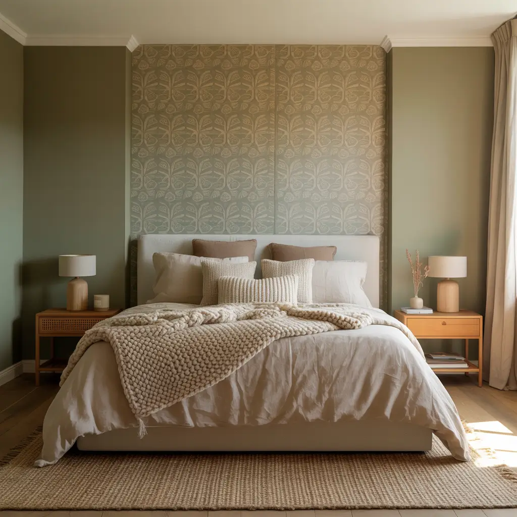 I recently helped my sister install a sage green wallpaper with a subtle botanical print in her bedroom, and wow – it completely changed the space. The pattern adds visual interest without overwhelming the calming effect of the sage green. It’s like having artwork on every wall!