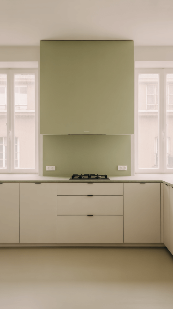 The sage green acts as the soul of the room, while the minimalist principles provide the bones. The result is a kitchen that feels incredibly peaceful and intentional.