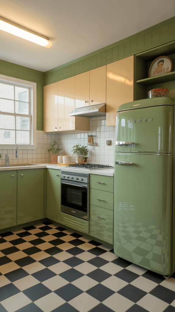 9. Vintage-Inspired Sage Green Retro Kitchen