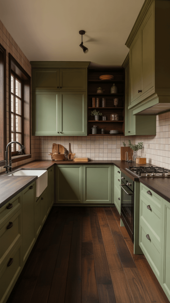 12. Small Kitchen Ideas Featuring Sage Green Cabinets