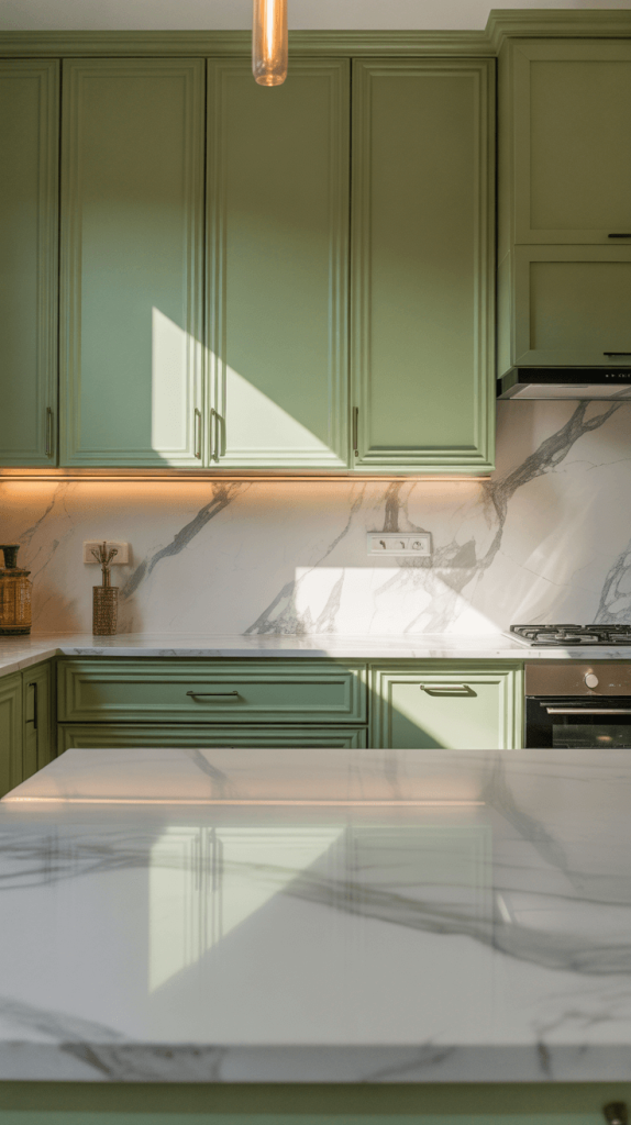 1. Sage Green Cabinets with White Marble Countertops: The Classic Power Couple