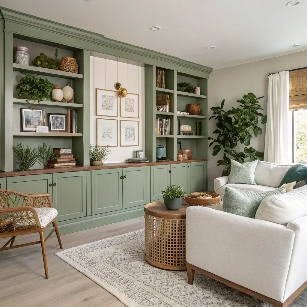 The beauty of sage built-ins lies in their versatility. They work as standalone features or complement other sage elements in your room without overwhelming the space.
