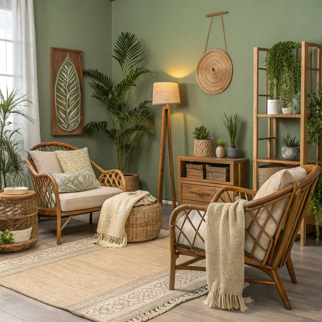 Layer in natural textures like jute, rattan, and unfinished wood. These materials share sage’s organic feel and create a cohesive natural narrative throughout your space.