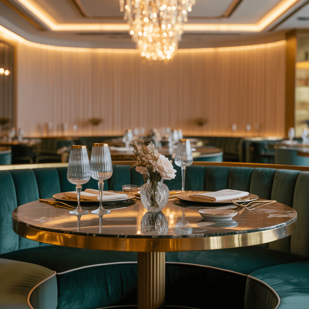 Luxury in small spaces comes from quality over quantity. You invest in fewer pieces but make them count. Think velvet banquettes instead of regular chairs, marble tabletops instead of laminate, and crystal chandeliers that make everyone look up and go “wow.”