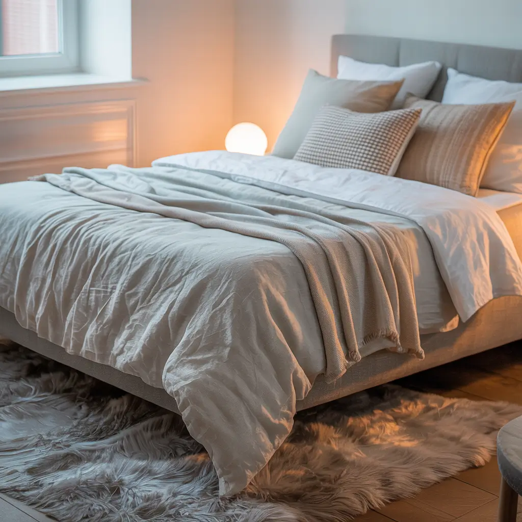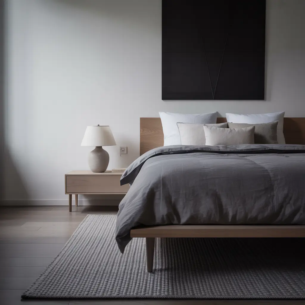 Layer different gray tones through your textiles. Light gray walls, medium gray bedding, and darker gray accents create depth without introducing competing colors. Add white and natural wood to keep things from getting too monotonous.
