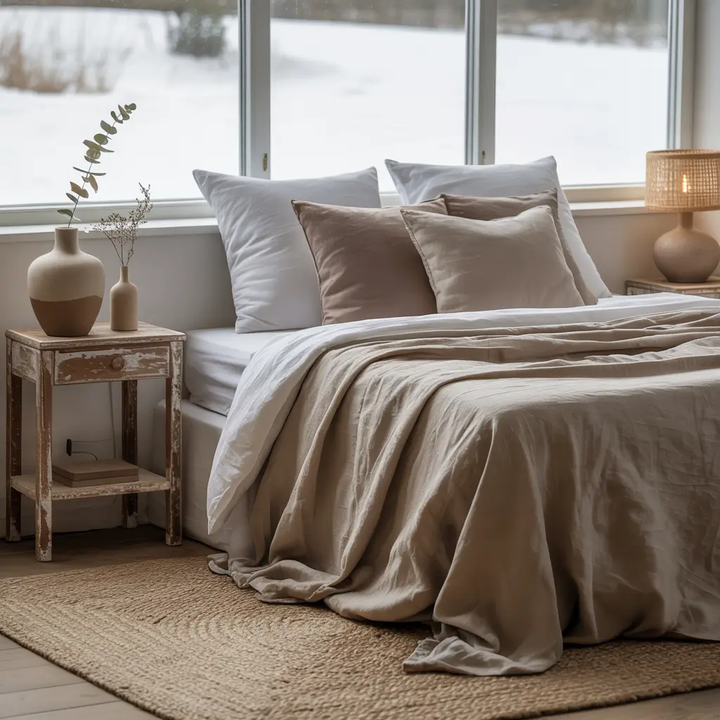 Pair linen with earthy tones like terracotta, sage green, or warm ochre for a bedroom that feels grounded and serene. These colors work brilliantly with the typical Nordic palette while adding just enough personality to keep things interesting.
