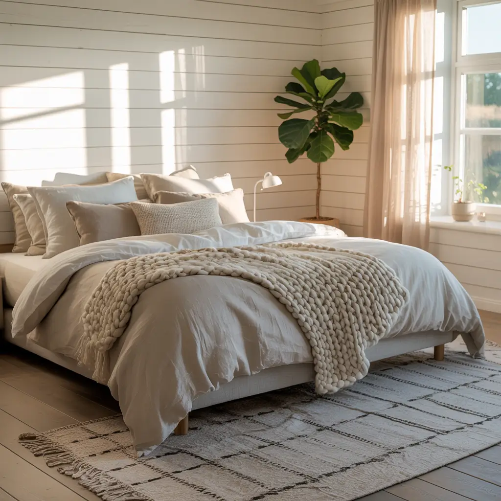 Start with your typical Scandinavian base – white walls, natural wood, neutral bedding. Then layer in bohemian elements like macramé wall hangings, woven baskets, and maybe a vintage rug with subtle pattern. The key is restraint (I know, easier said than done).