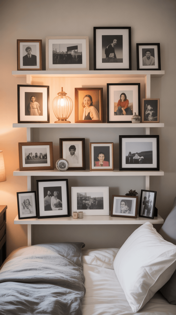 - Tell a Story: Use this space to display personal photographs that spark joy. Vacation pics, family portraits, silly moments with friends—these are the things that make your bedroom your happy place. IMO, a few personal photos beat a generic stock-art piece any day.