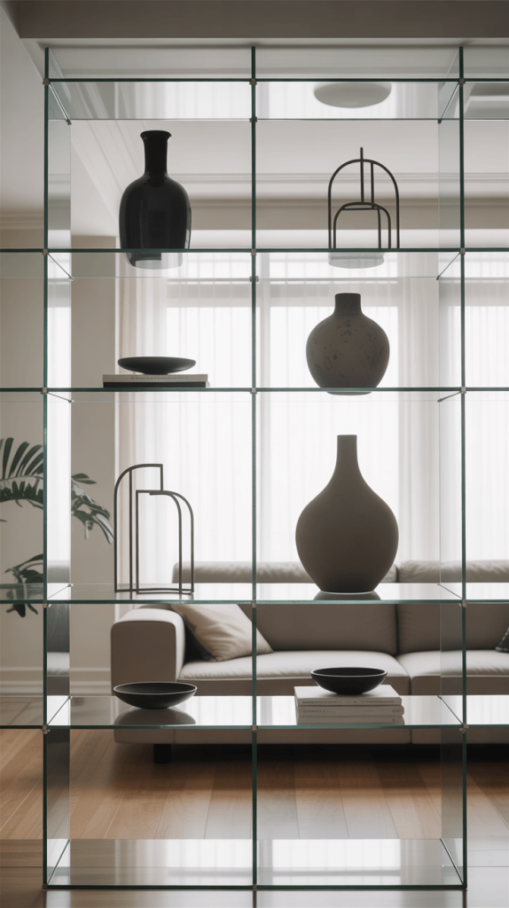 15. Opt for Clear Glass Shelves for a Modern Touch
