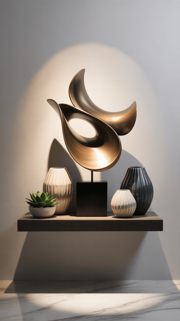 - Material Mix: A sleek metal sculpture can look amazing next to the organic warmth of a wood bowl. Contrast is your friend here.