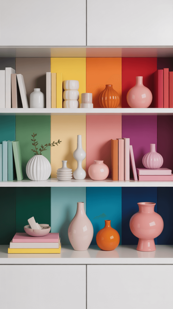- Color Blocking: Since the shelf “disappears,” you can create stunning blocks of color with your objects. Group all your blue vases on one shelf and all your green books on another.
