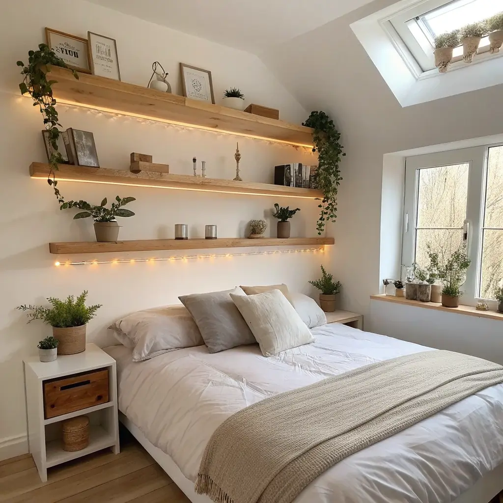 Nothing transforms a bedroom quite like floating wooden shelves paired with subtle LED strips. I installed these in my own bedroom last year, and honestly, the difference feels like magic every single night.