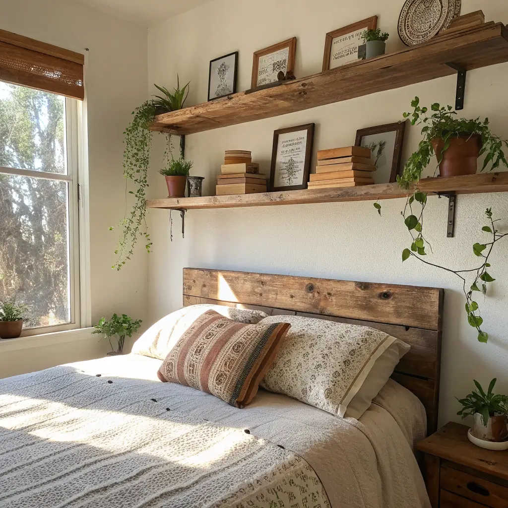 The imperfections make these shelves perfect, if that makes sense. Knots, grain variations, and weathering create visual interest that draws the eye upward, making your ceiling feel higher. Smart trick for small bedrooms, right?