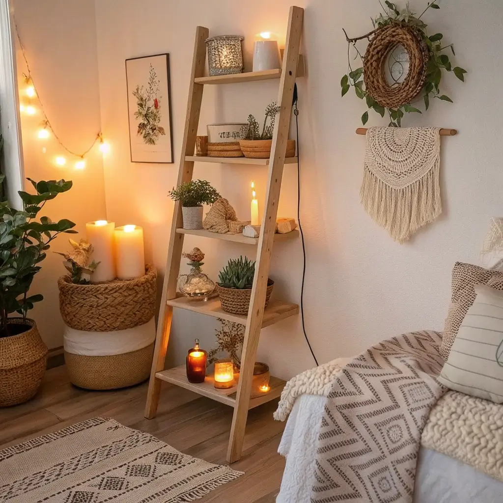 Corner Ladder Shelves for Bedroom