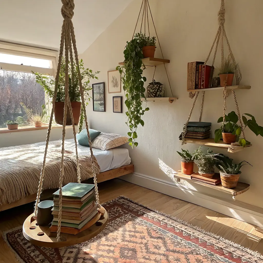 Remember macramé plant hangers? Now imagine that energy but for shelves. Rope shelves bring this nautical, beachy vibe that makes me feel like I’m on vacation even when I’m just organizing my sock drawer.