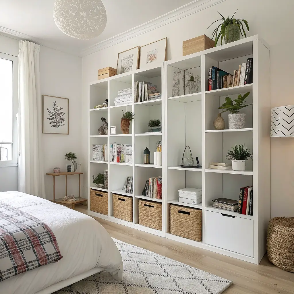 Remember playing with blocks as a kid? Modular cube shelves bring that same satisfaction to adult bedroom organization. I started with four cubes and now have twelve because they’re addictive – you can constantly reconfigure them based on your needs.