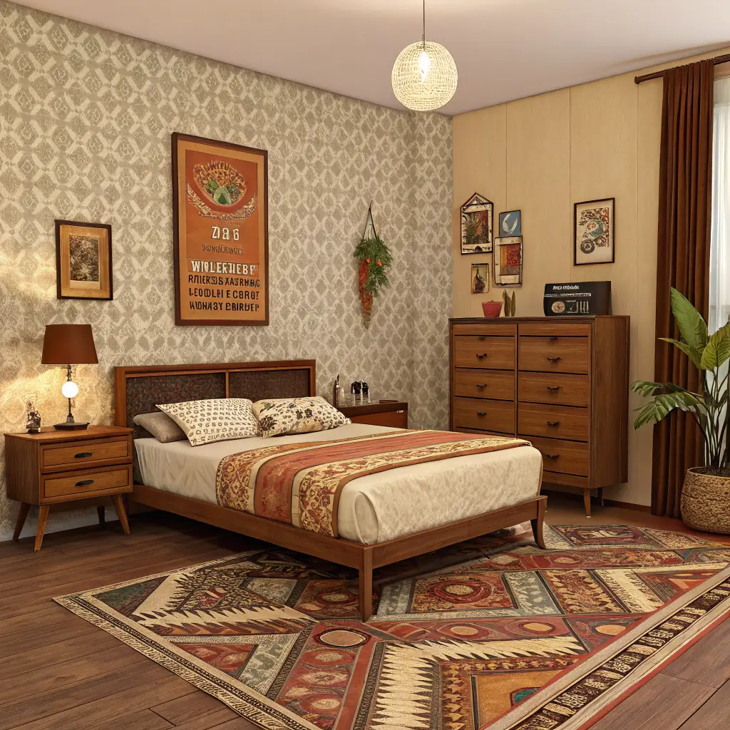 - 1960s: Bold geometric patterns, shag rugs, space-age furniture