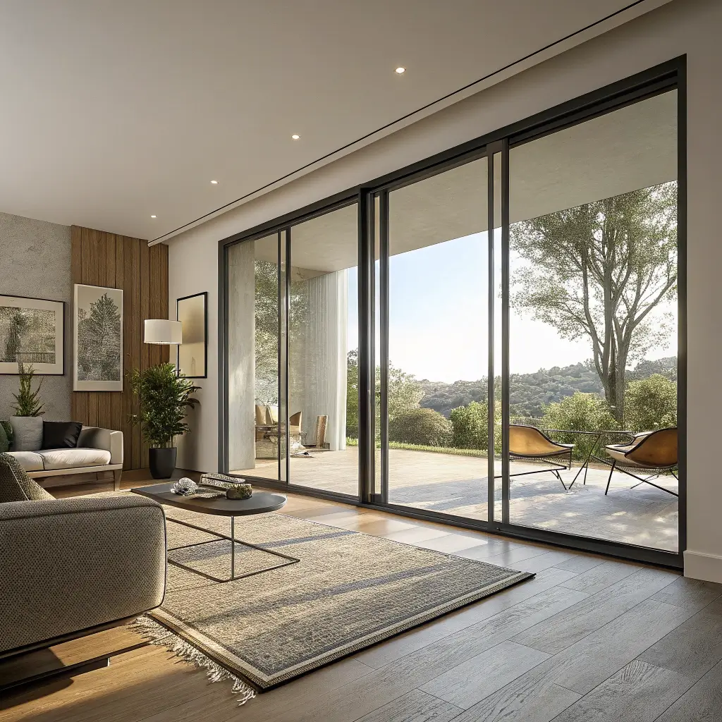 The best part about modern glass sliding doors? They come in countless configurations. You can go full transparent for maximum light, choose tinted glass for a bit of mystery, or opt for tempered safety glass if you’ve got kids running around like tiny tornados. I personally went with a black aluminum frame paired with clear tempered glass – sleek, safe, and absolutely gorgeous.