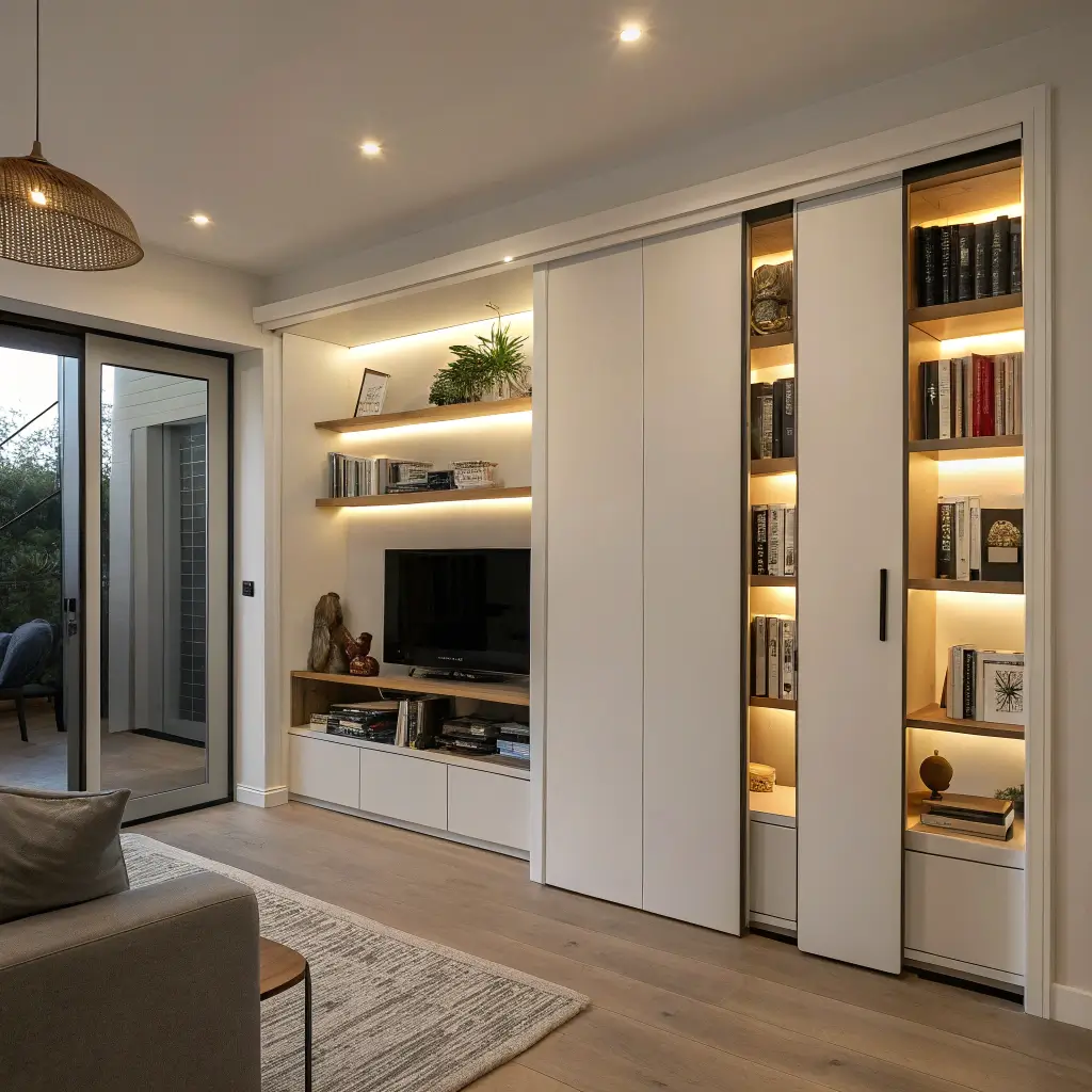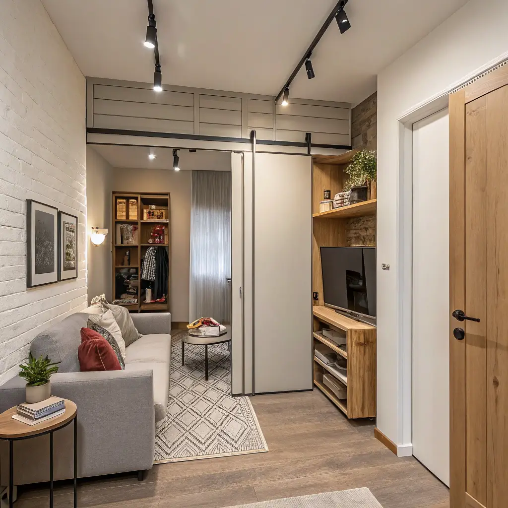 Pocket doors are the unsung heroes of small space living. They literally disappear into your wall when open – how cool is that? No door swing, no visual clutter, just seamless flow when you need it.