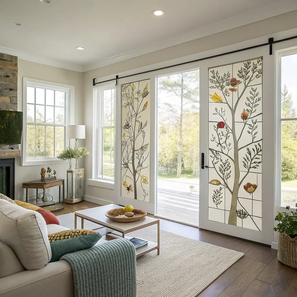 Why go plain when you can go fabulous? Decorative panel sliding doors turn functional elements into artistic statements. We’re talking laser-cut patterns, carved wood designs, or even stained glass inserts that make your doors conversation starters.