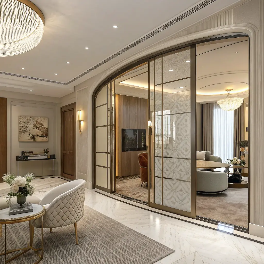 I toured a home with curved glass doors leading to a circular courtyard, and the effect was mesmerizing. The doors followed the natural curve of the space, creating this seamless indoor-outdoor flow that regular doors could never achieve.