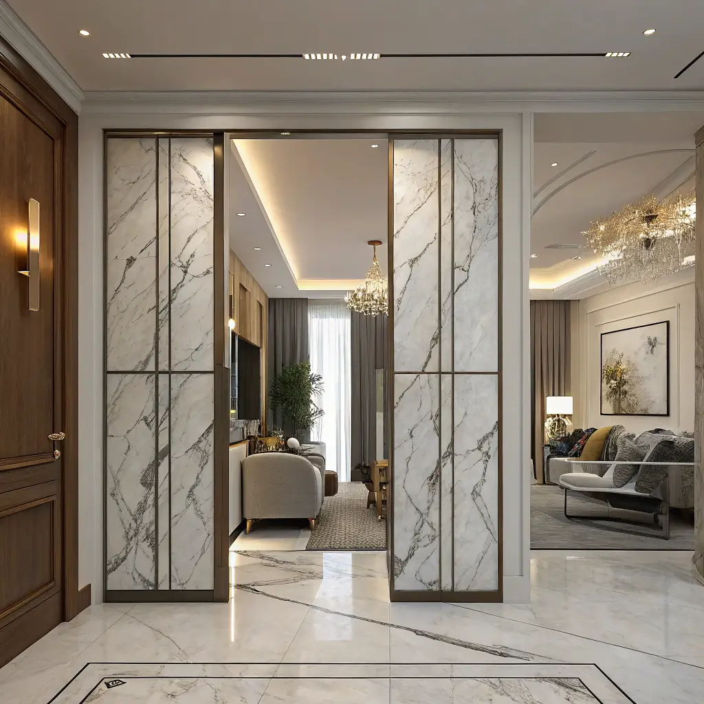 Real marble doors exist but cost a fortune and weigh tons. Smart alternatives like marble-look porcelain panels or high-quality laminates give you the look without the mortgage-worthy price tag. I’ve seen convincing fakes that fool everyone until they touch them.