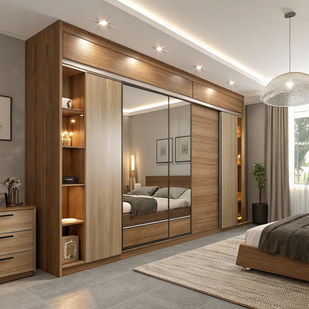 Now we’re talking! Wooden wardrobes with integrated mirrors solve two problems at once – storage and getting ready in the morning. My master bedroom features one of these, and it’s basically the MVP of my morning routine.
