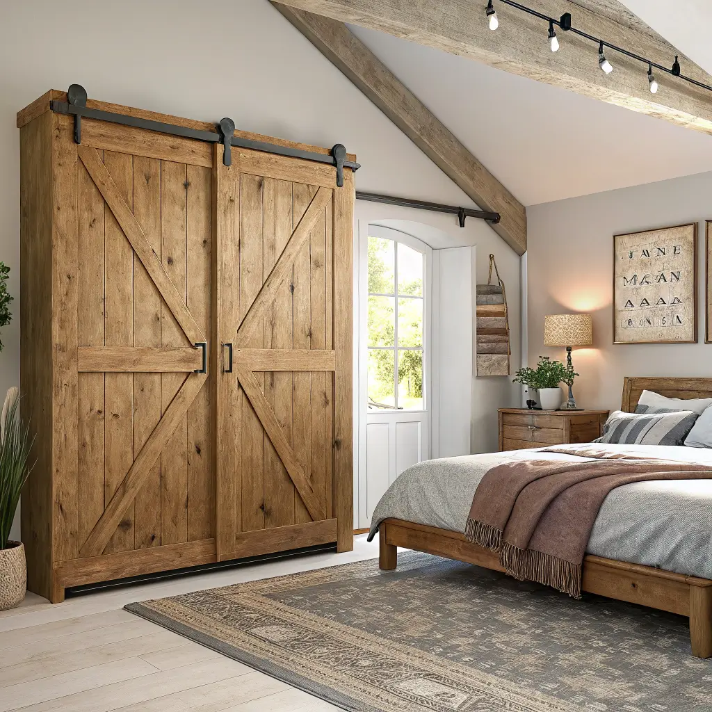 Who says wardrobes can’t have character? Barn door-style sliding wardrobes bring farmhouse charm to modern bedrooms. The exposed hardware and weathered wood finish create this amazing rustic-meets-contemporary vibe.