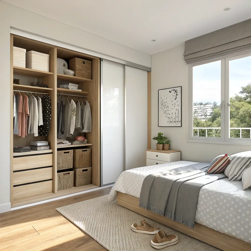 I transformed my tiny guest room with a floor-to-ceiling sliding wardrobe that takes up minimal floor space. The key? Vertical organization and smart internal layouts that squeeze maximum storage from minimum footprint.