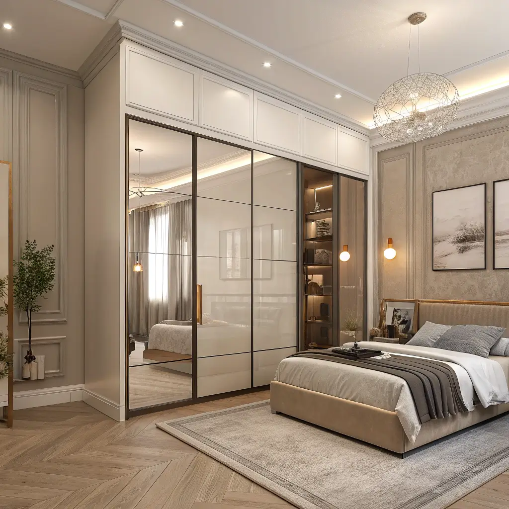 Glass panel sliding wardrobes bring lightness and sophistication that solid doors can’t match. Whether you choose frosted, tinted, or clear glass, these designs add architectural interest while maintaining functionality.